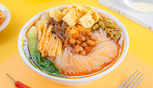 初聞?wù)f怪,捂鼻入口立覺驚艷;爽滑Q彈的魔芋螺螄粉,吸收了濃郁湯底,散發(fā)著令人著迷的酸爽香氣,口感勁道爽彈,軟糯適中,酸不激齒,辣而不燥,嗦出酣暢淋漓。
